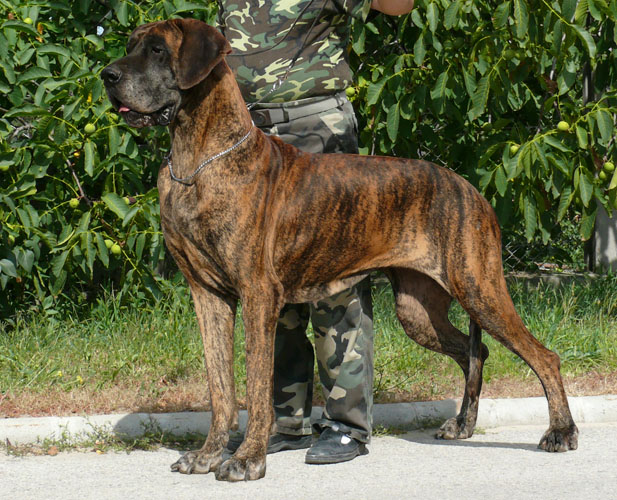 Teste: A dog hatalmas kutya, amelyben a nemes külső robusztus felépítéssel, az erő eleganciával párosul. Testének hossza megegyezik a marmagasságával, bár a szukák teste valamivel hosszúkásabb lehet. A rövid, erős, feszes háton a váll a legmagasabb pont; a lágyék erőteljes és kissé ívelt. A mérsékelten hosszú, magasan tűzött farok vége a csánk alá, de minimum a csánkig ér; a tövénél vastag, majd kihegyesedik. A mellkas széles, és egészen a könyökig ér. A has lágyan ívelt. A hosszú lapocka ferdén áll, a könyökök szorosan a testhez simulnak. A lábak hosszúak, feszesek és függőlegesen állnak. A kerek mancsokon az ujjak rövidek, erősen íveltek, és szorosan egymás mellett helyezkednek el. Az izmos, feszes, gyönyörűen ívelt nyak magasan áll.